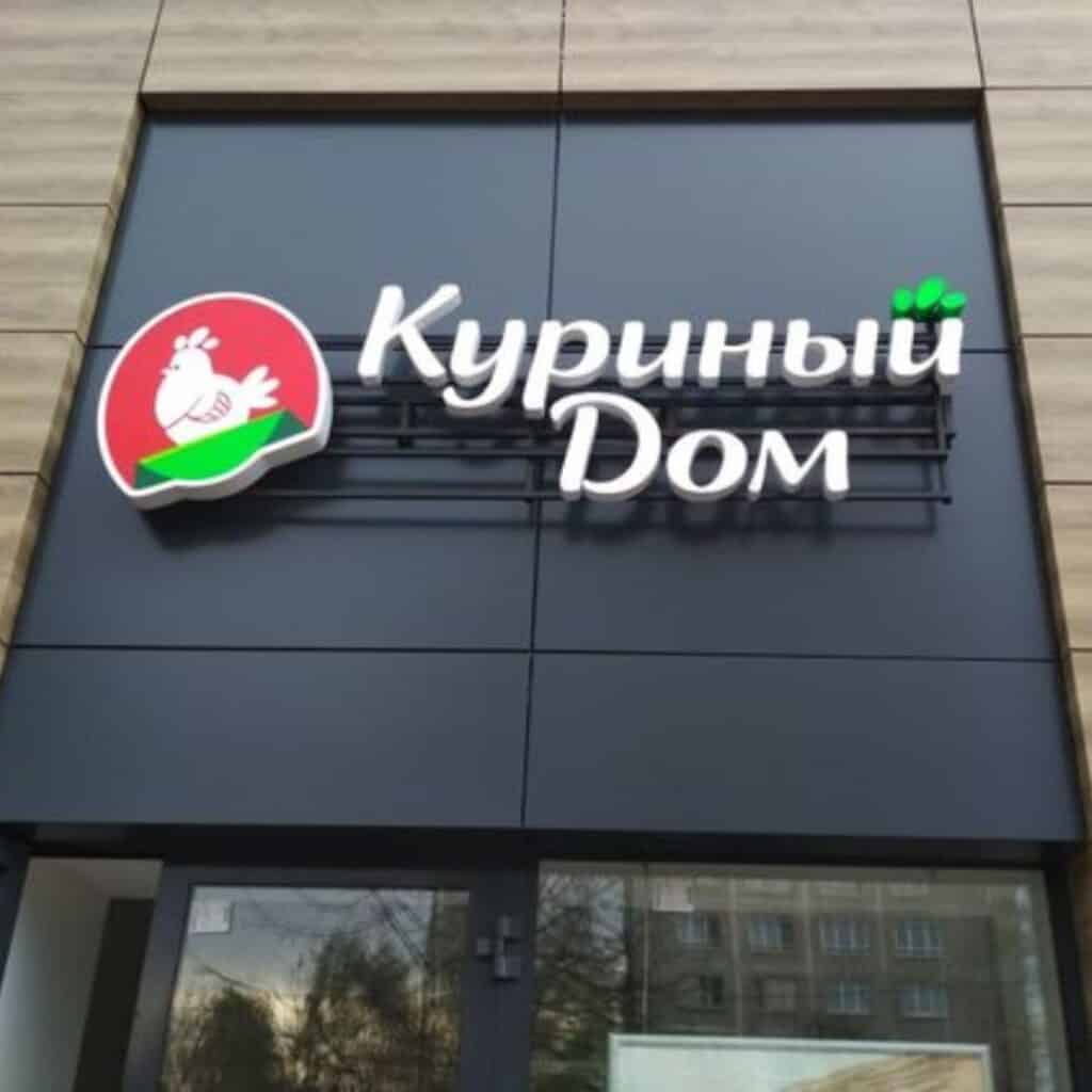 Объемные буквы и логотипы. Это стильное и современное решение, которое делает вывеску объемной и заметной. Объемные элементы добавляют вывеске глубину и создают эффект присутствия, что выделяет ваш бренд на фасаде здания.