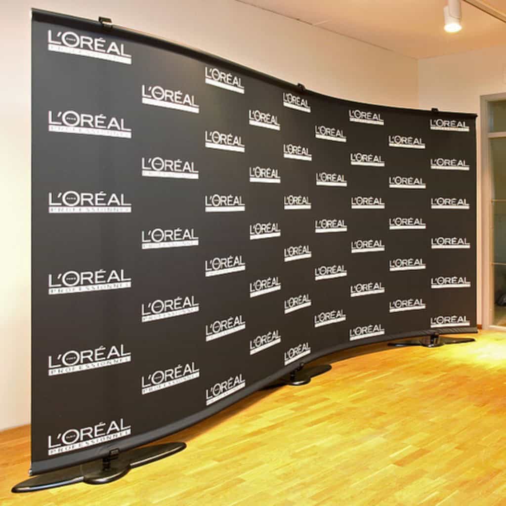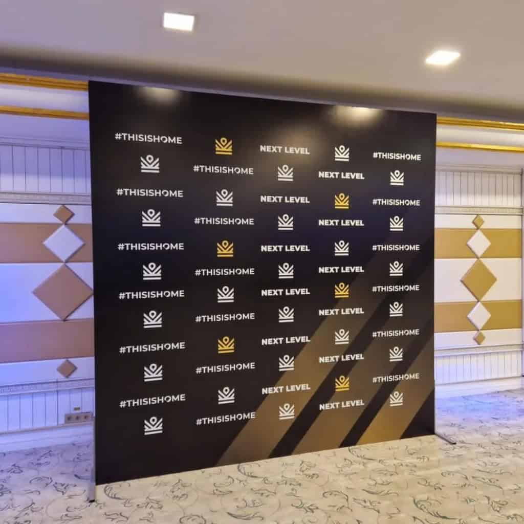 - Презентации. Бренд стена с логотипом вашей компании или названием продукта помогут создать благоприятное впечатление и запомнить ваше представление.