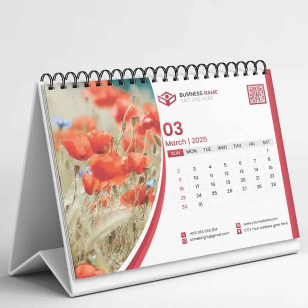 Перекидной календарь – включает 12 страниц с красивыми изображениями и индивидуальным дизайном.